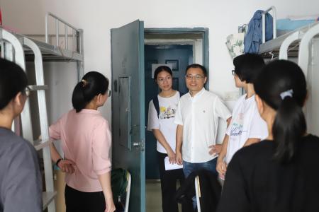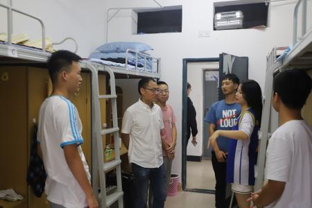 9月13日下午,统计日韩无码 迎新工作已基本进入尾声,日韩无码 党委书记陶春海在各班助班的陪同下走访2020级新生寝室,与新生进行了亲切的交谈。