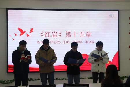 学生党员陈志敏、李鹏、许祖海等人进行了章节诵读,回顾红岩精神。在对《红岩》经典片段的诵读中,陈志敏抑扬顿挫的语调将江姐等众人身处狱中却仍然不懈地坚持着反抗的场面展现得淋漓尽致。“毒刑拷打那是太小的考验……竹签是竹做的,但共产党员的意志是钢铁!”江姐的这段话引起了在场所有党员的共鸣,“身为党员,就应该自觉地磨炼自身,磨练出钢铁般的意志,坚定地守护自己的信念。”许祖海说。