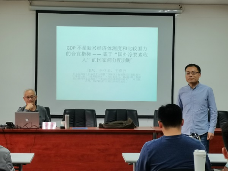 第二场讲座以“GDP不是新兴经济体测度和比较国力的合宜指标”为主题。邱东教授介绍了1990-2019年以来“国外净要素收入”(Net Factor Incomes from abroad, NFI)在全球各国的分配情况,明确指出新兴经济体GDP增长与NFI赤字存在加大的剪刀差趋势,发展中国家为“新兴”支付了的巨大隐含成本;NFI非对称格局掩盖了核心富国从国外特别是从新兴经济体套利的严重性,“美国吃亏论”绝对不成立;GDP不是普适指标,GNI在反映国力上优于GDP。最后,邱东教授阐述了围绕全球价值链格局的某些误判和误导概念,从国家类型适用性的角度对GDP指标进行批判,并呼吁新兴经济体需提防GDP对经济测度和国力比较可能隐含的误导,同时应该进行国际经济统计人才的战略布局,提升国家软实力。