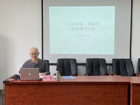 第三场讲座以“多元距离观、模糊性与模糊聚类分析”为主题。邱东教授首先阐释了对社会经济计量中的“距离”进行多元解读的原因以及必要性,进一步,邱东教授指出距离的内涵可能与事物的分布有关,距离不同区间的权重大小与其在全局中的位置相关,因而距离并非越短越好,直接路径也未必优于间接路径,在现实案例的认知中需要具体情况具体分析。接着,针对社会经济中无法满足“等价关系”的情况,邱东教授介绍了模糊聚类分析方法在此场景下的适用性,并指出方法应用时应特别注意的问题。在讲座的结尾,邱东教授借“秃头悖论”的例子强调事物内部本身存在着多元性与边界模糊性,因此数理方法在经济领域的应用固然也是经济统计,但并不是经济统计学的主体部分,而只是其作为交叉学科存在的一种统计学。