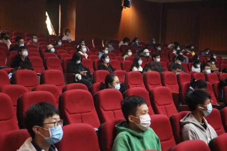 10月23日,统计日韩无码 顺利开展“红色经典进校园”活动,组织了两百多位学生于蛟桥园北区大礼堂集体观看红色影片《我和我的祖国》。