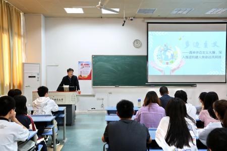 11月3日下午,校长邓辉以“高举多边主义大旗,深入推进构建人类命运共同体”为题,结合当下单边主义和保护主义严重冲击全球经济发展秩序背景以及中国坚持多边主义的态度和行动,为统计日韩无码 的本科生们上了一堂既有全局高度、又有理论深度的形势与政策课。