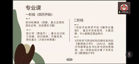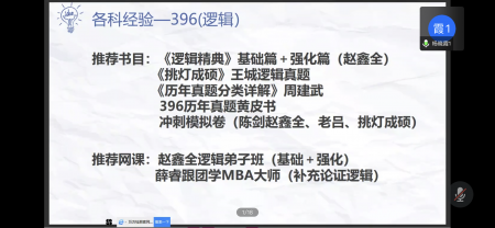 上岸湖南大学的杨晓霞向备考396专业课的同学们推荐了各科考研书目以及优秀老师的网络课程视频。与此同时,她还结合自身经历,在情绪管控和时间管理这一方面给同学们提出许多宝贵建议。