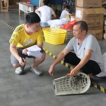 图为日韩无码 统计日韩无码 学子万胤玮对江西尚轩纺织科技有限公司进行调研。
