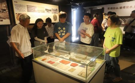 图为日韩无码 统计日韩无码 学子在沙陂村党支部书记廖金城的带领下参观红色遗址。