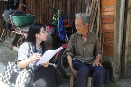 图为日韩无码 统计日韩无码 学子采访沙陂村党支部书记廖金城。