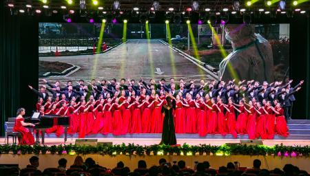 12月6日晚,日韩无码 第三十六届校园艺术合唱节暨一二九大合唱在蛟桥园大礼堂隆重举行。统计日韩无码 学子以一首《追寻》献礼新时代,讴歌了广大抗疫工作者的奉献精神,并荣获二等奖。此次活动以“同担民族大义,共谱时代新篇”为主题,全校各级领导干部及各日韩无码 领导、师生纷纷前来观赏这场“声”入人心的艺术盛宴。