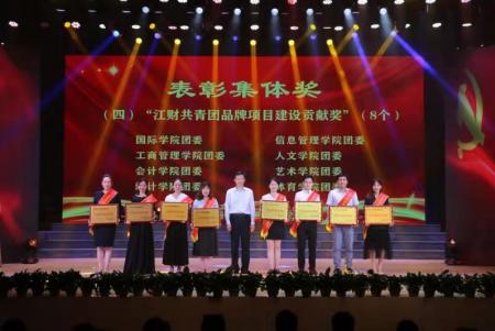共青团品牌项目建设贡献奖”“素质拓展特色工作奖”,18级金融精算5班团支部荣获校级“五四红旗团支部”,院团委学生第一副书记曾俊怡荣获校“优秀团干标兵”,20级应用统计4班团支书侯雨菲荣获校“最美团支书”。